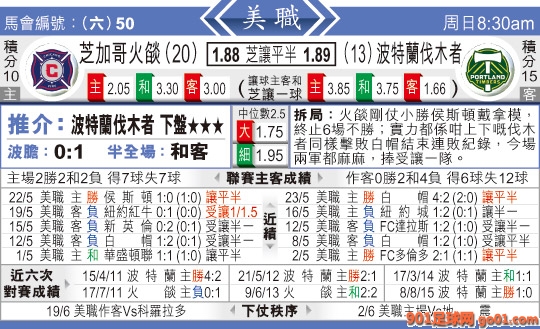 08:30 美職聯 芝加哥火燄:波特蘭伐木者