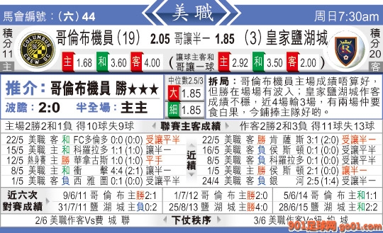 > 07:30 美職聯 哥倫布機員:皇家鹽湖城