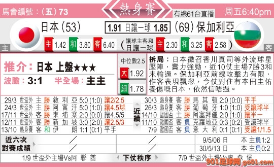 > 18:40 國際賽 日本:保加利亞